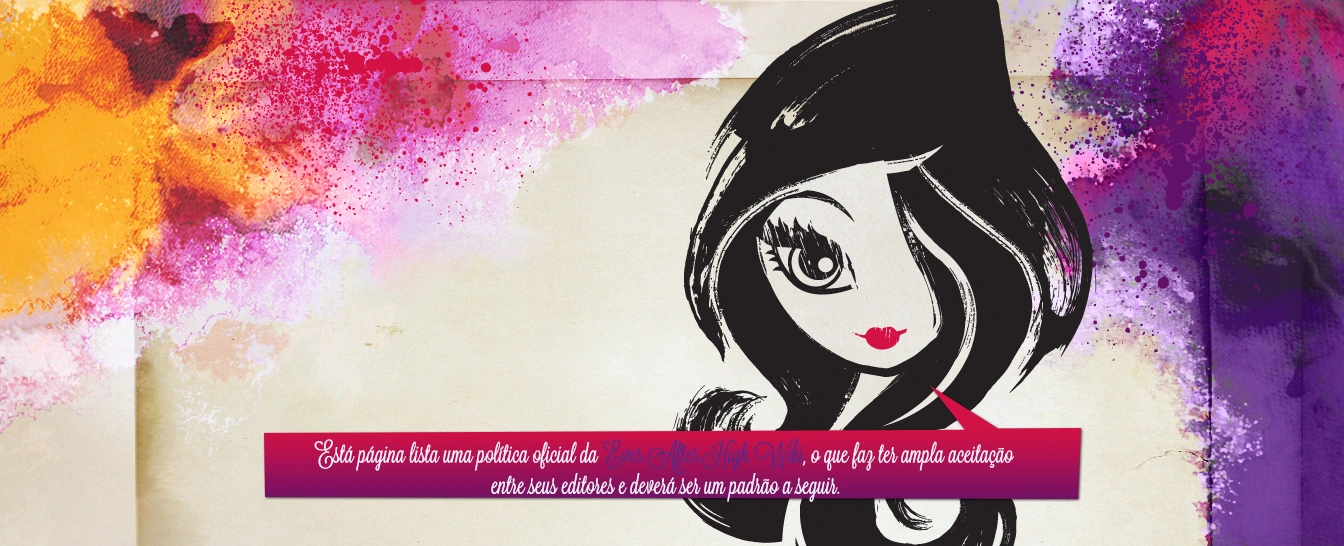Estas regras foram elaboradas com o intuito de fazer com que sua experiência na Ever After High Wiki seja melhor e mais civilizada. Todos devem obedecer a elas, sendo qualquer desobedecimento delas passível de uma medida administrativa, como um bloqueio da wiki.