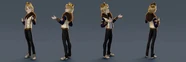 Daring has short and wavy light blond hair, pale skin and pale blue eyes. He also wears letter jackets with EAH printed on them (which is the Ever After High school-logo), white, high-top sneakers with gold designs and crown on them, blue jeans, and blue, checkered-patterned vests underneath his letter jackets. In "Epic Winter", he wears his 'Signature - Royals' letter jacket with a fur-lined collar, but it is under the doll line, "Epic Winter", not "Signature" or "Signature - Royals". He wears this in "Epic Winter", the TV special. His clothing mostly consists of letterman (sports) jackets or in other words "letter jackets" and gold crowns for his head. He dresses formally and casually with a mixture of letter jackets to bring out that unique look.